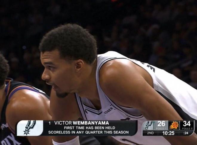 本场比赛,马刺队当家球星文班亚马表现不佳,他全场出战34分27秒,14投4中仅得9分9篮板2助攻1抢断4盖帽,其中三分球5投1中,没有获得罚球机会,出现了6次失误和4次犯规,正负值为-3。