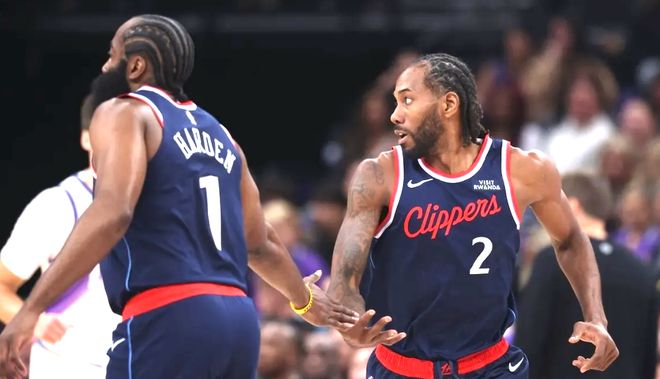 反观快船,新赛季开局状态起伏明显,上场与热火的较量中,以119-120惜败,暴露诸多问题:哈登虽砍下29分7篮板8助攻的准三双数据,但下半场体能明显不足,7次失误成为球队失败的关键因素之一;莱昂纳德也拼尽全力,27分4抢断2盖帽的表现尽显攻防价值,但是最后错失关键一投,功亏一篑!新赛季以来,哈登、伦纳德的消耗很大,新援并未起到缓解双核压力的效果。祖巴茨贡献9分18篮板,但对位的阿德巴约能里能外,让祖巴茨很难受。比尔虽以12分创下加盟以来得分新高,却难改球队整体活力匮乏的现状,目前快船尚未找到赢球的节奏。此役,伦纳德因为脚踝伤势休战!