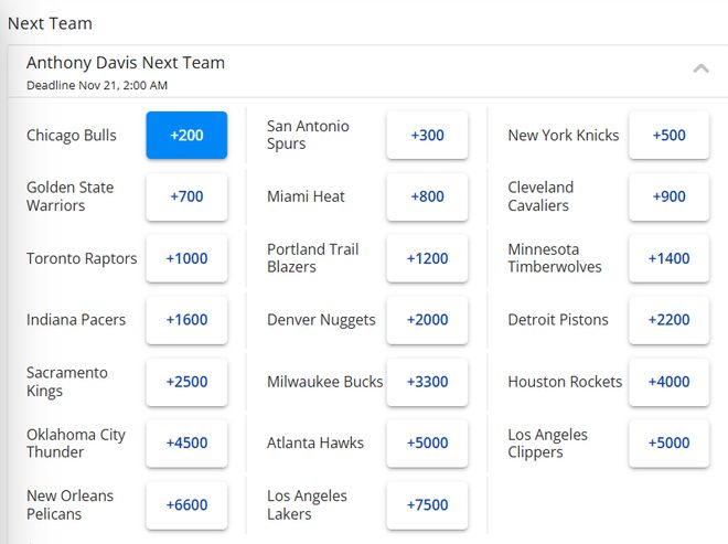 浓眉最新下家赔率出炉:公牛领跑马刺第2 勇士第4湖人第20