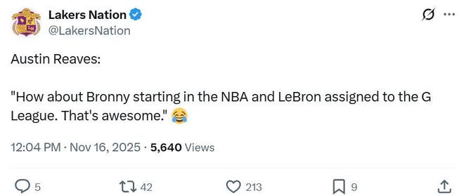 里夫斯:布朗尼打首发、勒布朗下放G联赛,这事儿也太酷了